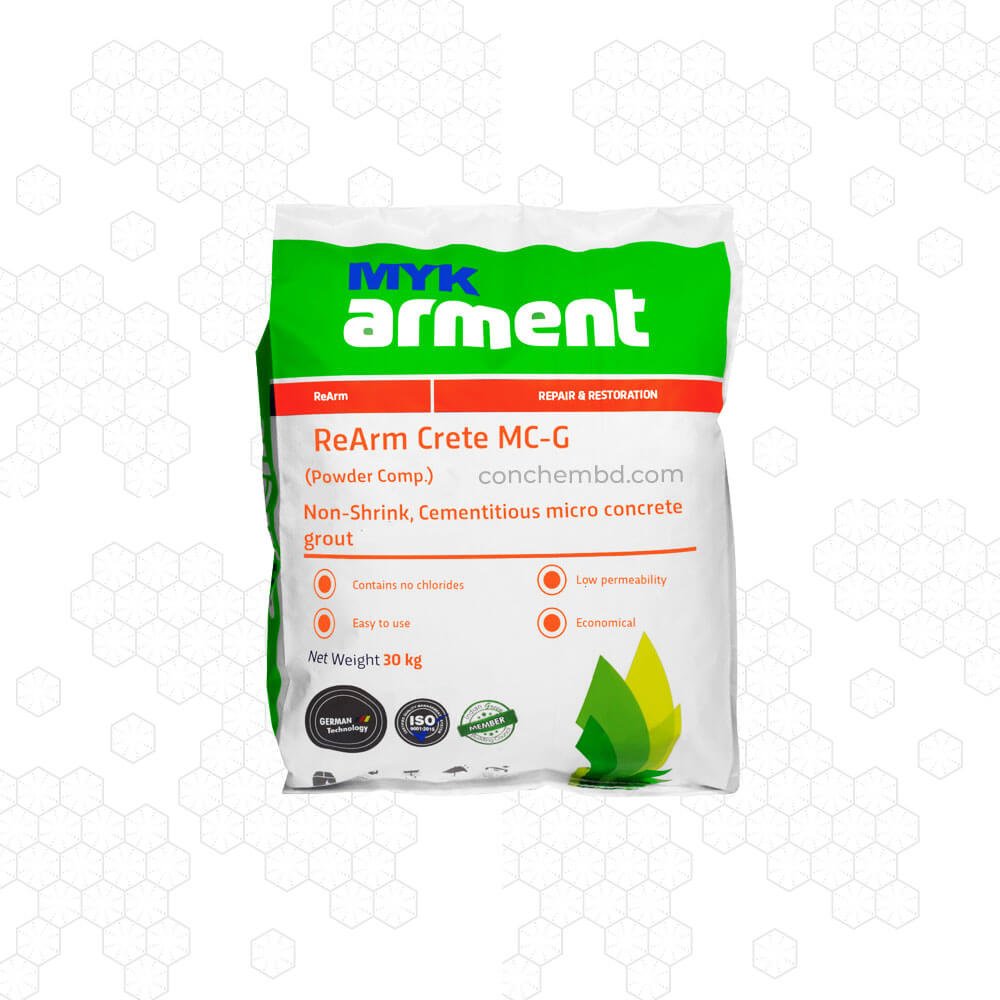 Description ReArm Crete MC is a product of Myk Arment Limited. Conchembd is one of the trusted sellers of all kinds of Myk Arment Products. If you are looking for best ReArm Crete MCG price in Bangladesh and other Myk Arment products best price in Bangladesh, then conchembd is a trusted place with best price of Myk Arment products. Conchembd is an authorized supplier of Myk Arment products. All kinds of best Myk Arment products in one place “conchembd”. Conchembd has online shop for all kinds of construction chemicals including all kinds of Myk Arment products. Please order online with free delivery or call us 01840-402299 or email us [email protected]. Retails and bulk orders are available. Product details of ReArm Crete MCG price in Bangladesh: ReArm Crete MC is a high-performance, multi-component, cementitious repair mortar specifically designed for structural concrete repairs. It is formulated with a unique blend of high-strength cement, graded aggregates, and specialty additives to provide exceptional durability, bonding strength, and resistance to chemical attack. Uses: ReArm CreteMC(G) is recommended for Structural strengthening measures Columns Beams Slabs Foundations Grouting of large gaps. Features and Benefits: Can be pumped or poured into restricted locations. Highly fluid to allow for placement without vibration. Pre-packed for better results and consistency. The expansion system compensates for shrinkage settlement in the plastic stage. Low permeability Bonds well with receiving substrate Contains no chlorides. High early & ultimate strength Packaging: ReArm Crete MC (G) is available in 30 kg bags.